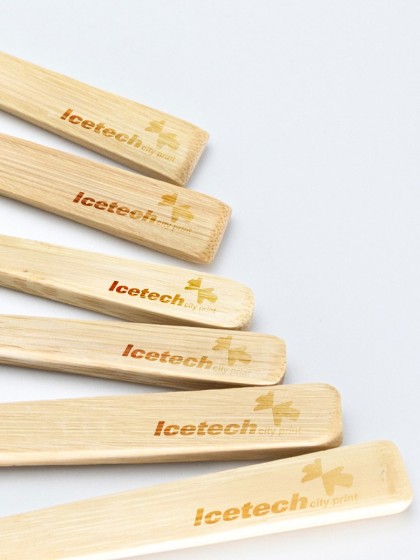 Datorită materialului său din lemn, acest suport se pretează perfect pentru a fi inclus în gama de produse promoționale personalizate. Recomandăm personalizarea prin gravură laser direct pe bradul din lemn.